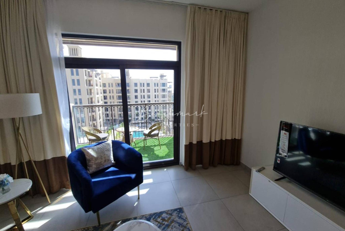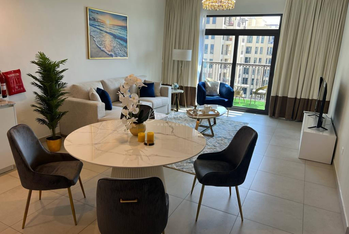 Discover refined living in this beautifully furnished 1-bedroom apartment (772 sq.ft.) in Lamtara 1, Madinat Jumeirah Living. Designed with elegance and comfort in mind, the apartment features high-end finishes, a bright open-plan layout, and a serene community view.
